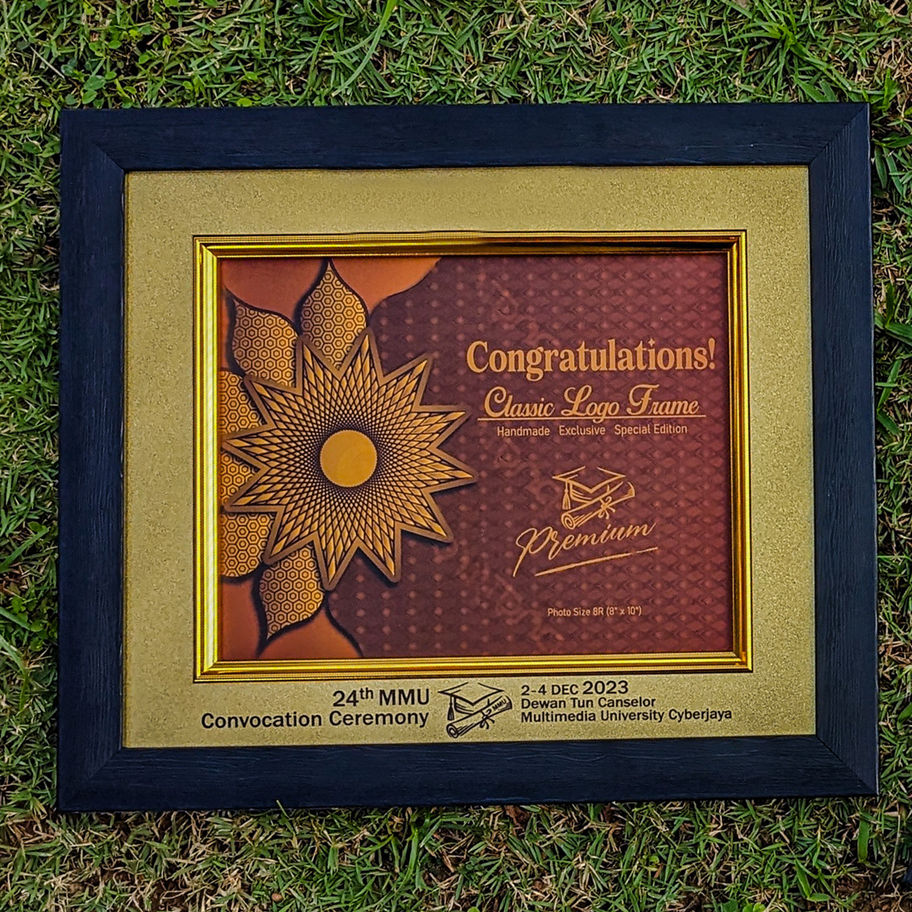 The MMU Convocation Photo Frame is the perfect way to commemorate this special day. Made with high-quality materials, this frame features the MMU logo and is designed to hold a 4x6 inch photo of the graduate. This product is available for pre-order and will be shipping within *21 working days. Order now to secure your piece of MMU history! Don't miss out on this opportunity to own a beautiful keepsake from the MMU Convocation.